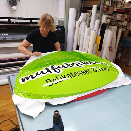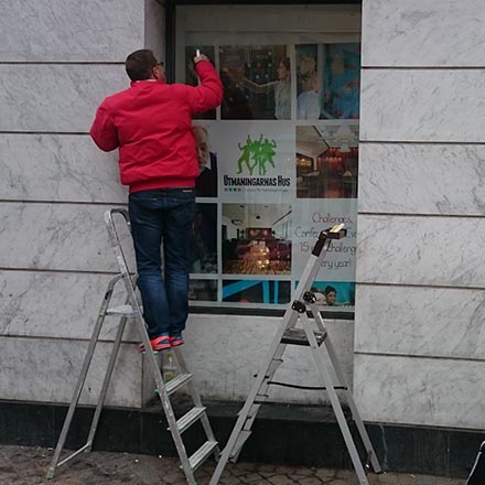 Printad och/eller utskuren folie sätter vi på de flesta underlag. Fönster, plåt, plast och t.o.m. asfalt!
