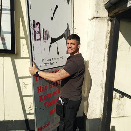 Vi monterar alla typer av skyltar, vepor, banderoller och tavlor.